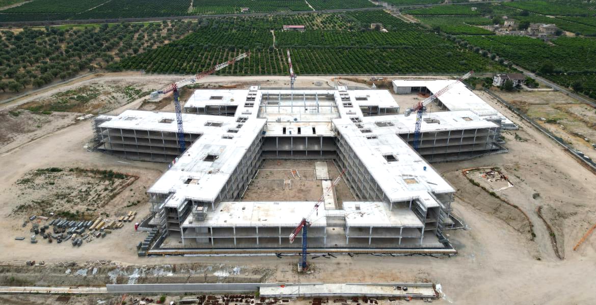 Stato attuale (gennaio 2026). Secondo i documenti di programmazione della Regione Calabria, il completamento dei lavori è previsto entro la fine del 2026, con l’opera che è in fase di sprint finale. Il cronoprogramma è stato definito vincolante per la Regione; l’inserimento dell’opera nello “stato di emergenza” dell’edilizia sanitaria ha accelerato procedure burocratiche e modifiche progettuali. Progresso delle opere I lavori sono ripartiti dopo una fase di rallentamento; l’involucro edilizio principale è stato completato e si procede con impianti e finiture interne. Sottoservizi e altre infrastrutture necessarie sono in corso di realizzazione o completamento. Eventi recenti Incendi nel cantiere nei mesi estivi del 2025 (con alcuni feriti), hanno sollevato preoccupazioni politiche localmente, anche se l’opera continua secondo il cronoprogramma.
